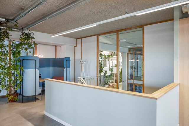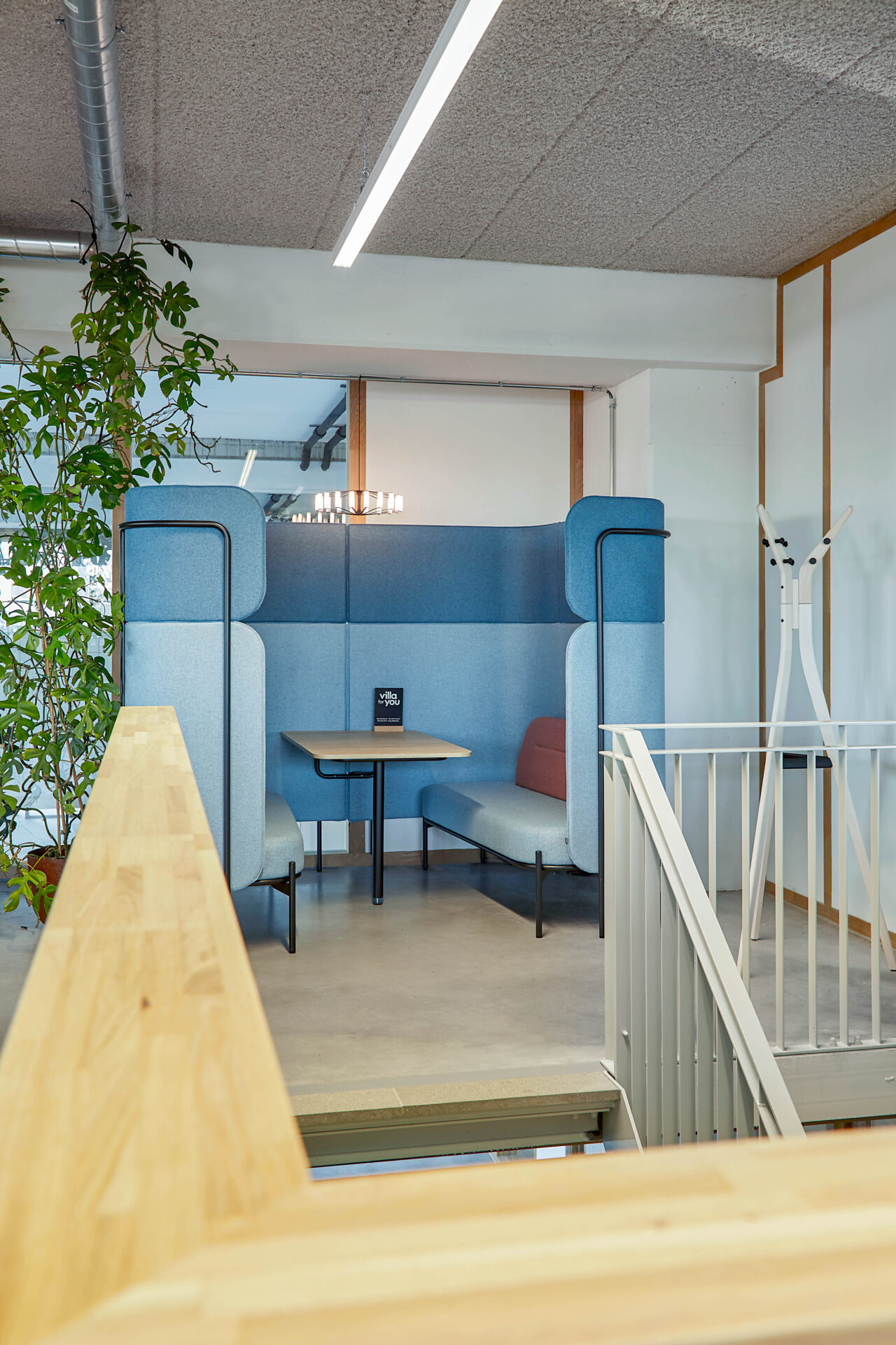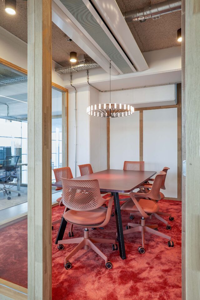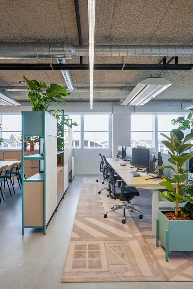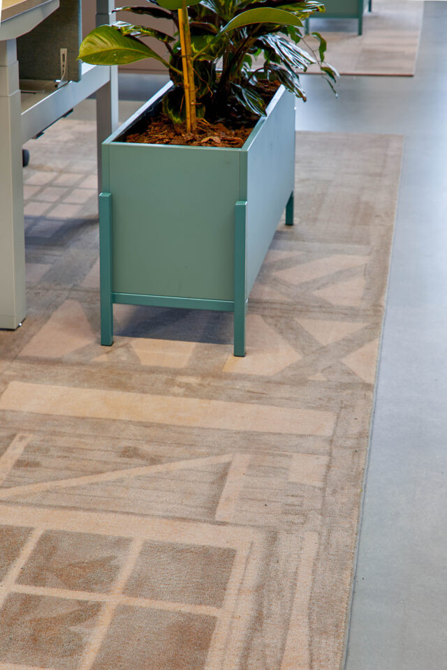 Het interieur is verrijkt met speciaal ontworpen, op maat gemaakte kleden die sfeer en identiteit toevoegen aan de ruimte. Daarnaast ontwierpen we dividerkasten en maatwerkmeubilair die naadloos aansluiten bij zowel de uitstraling als de functionele wensen van Villa For You. Dankzij een efficiënte indeling ontstond een open werkomgeving met royale werkplekken, diverse overlegmogelijkheden en een uitnodigende kantine.