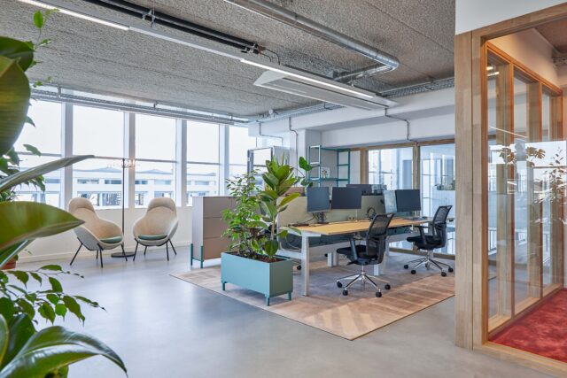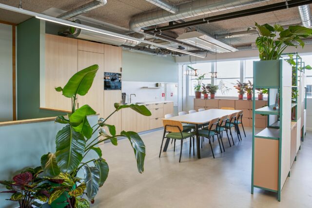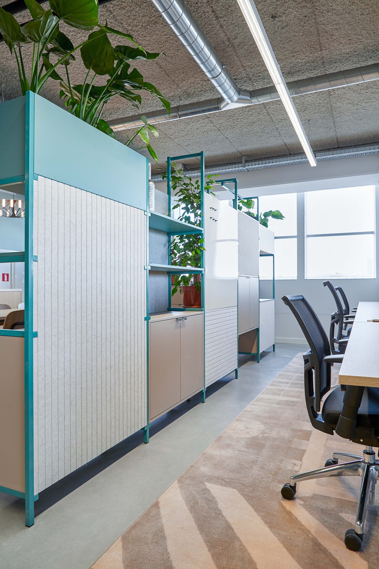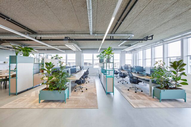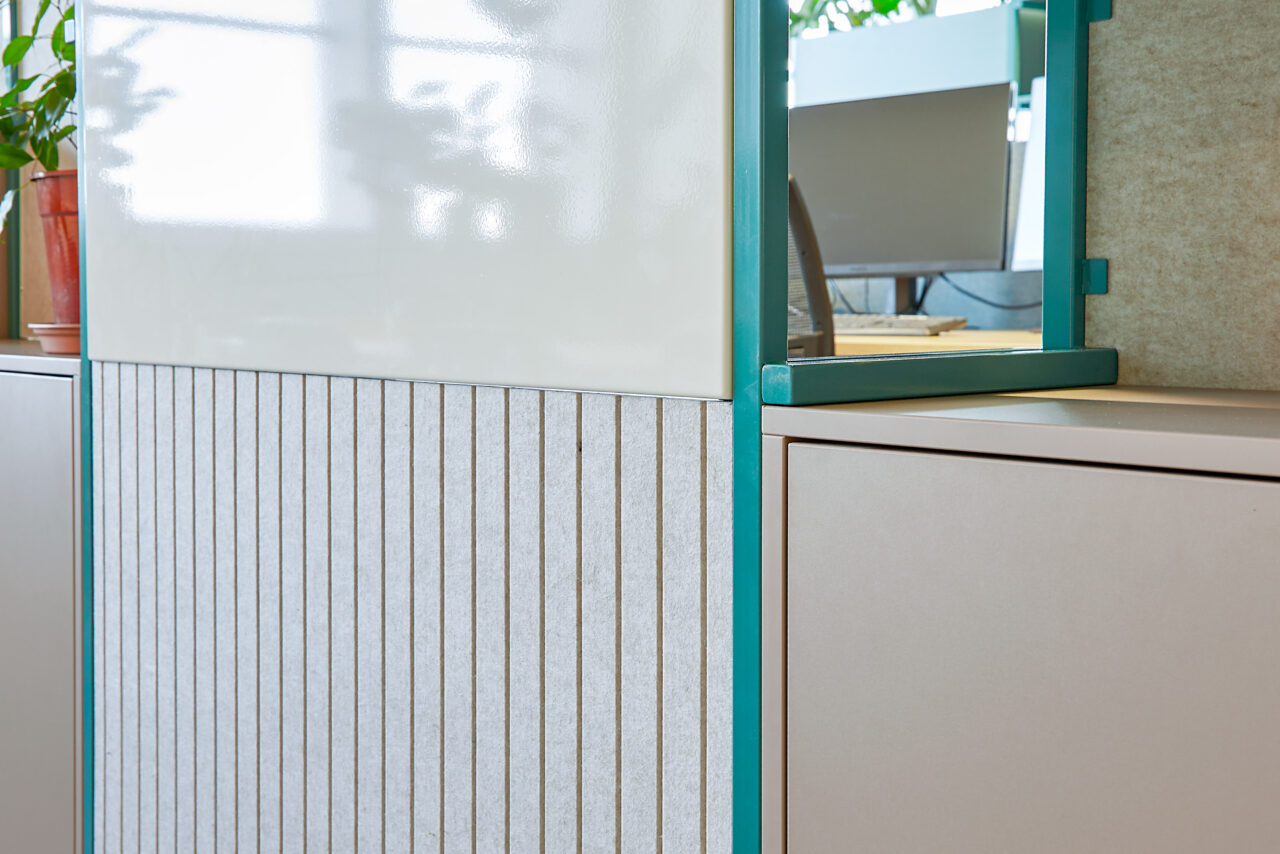 Het interieur is verrijkt met speciaal ontworpen, op maat gemaakte kleden die sfeer en identiteit toevoegen aan de ruimte. Daarnaast ontwierpen we dividerkasten en maatwerkmeubilair die naadloos aansluiten bij zowel de uitstraling als de functionele wensen van Villa For You. Dankzij een efficiënte indeling ontstond een open werkomgeving met royale werkplekken, diverse overlegmogelijkheden en een uitnodigende kantine.